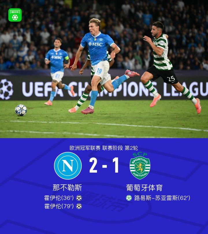 北京时间10月2日那个狂热的夜晚,欧洲冠军联赛的战火再次点燃,联赛阶段第2轮的激战中,那不勒斯与葡萄牙体育上演了一场惊心动魄的对决。那不勒斯霍伊伦犹如天神下凡,梅开二度,惊艳全场!而葡萄牙体育的路易斯-苏亚雷斯也不甘示弱,一记破门让比赛悬念迭起。最终,那不勒斯以2-1的比分,险胜葡萄牙体育,这场较量,真是太刺激了!