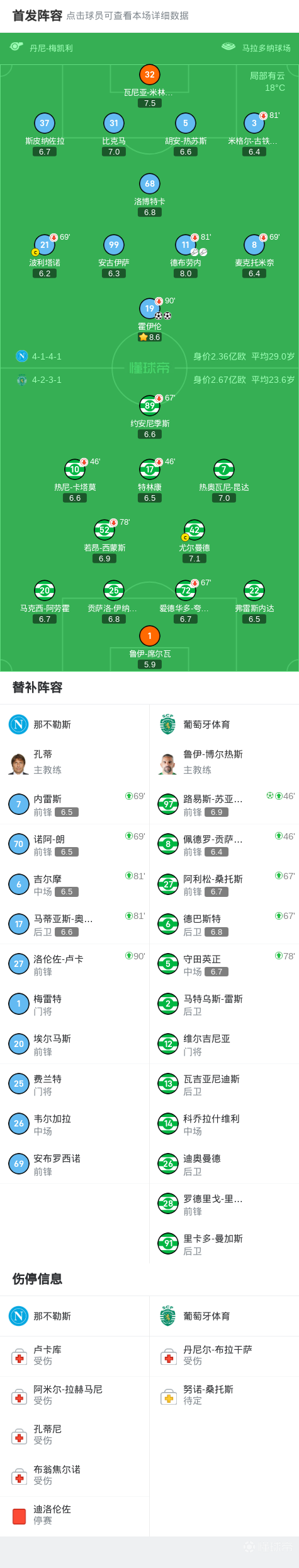 那不勒斯2-1葡萄牙体育,霍伊伦双响,德布劳内助攻梅开二度